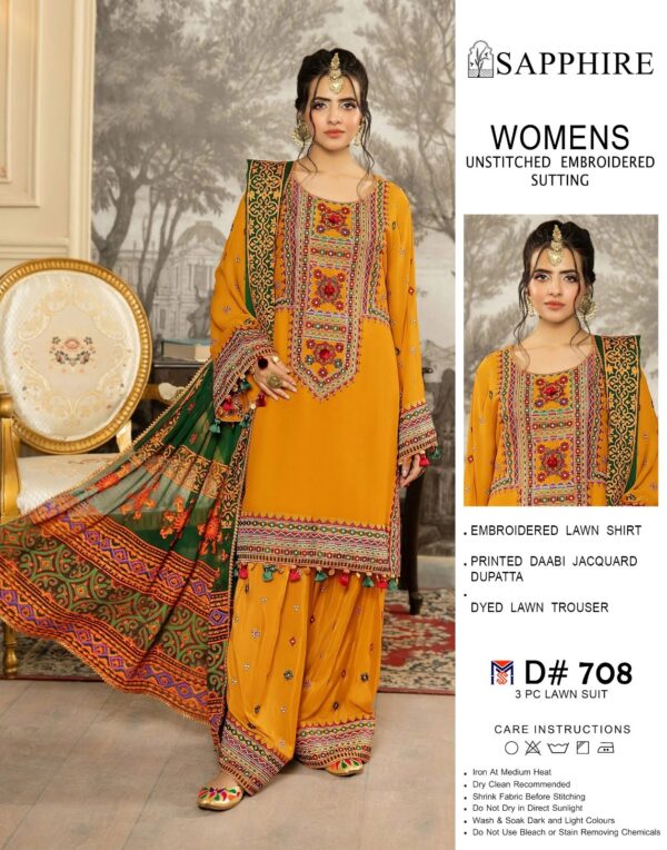 SAPPHIRE 3PC EMB LUXURY DESIGNER LAWN VOL-02 SPY-708