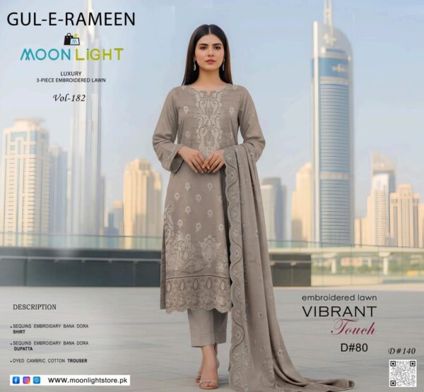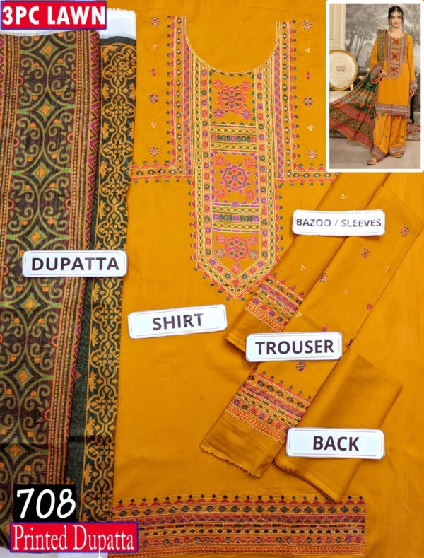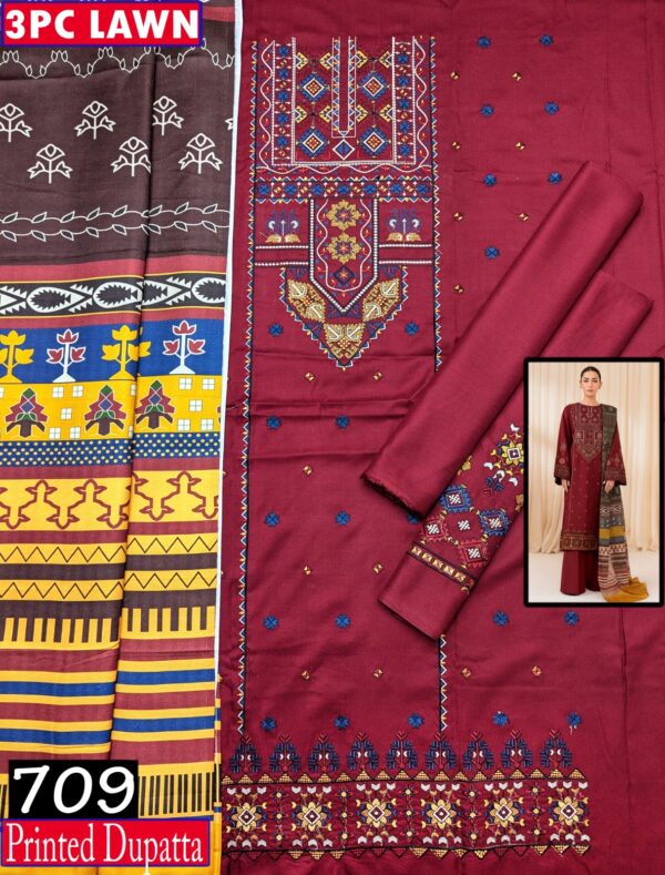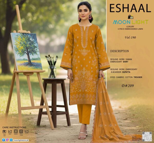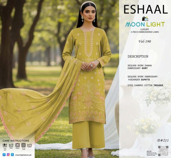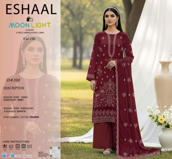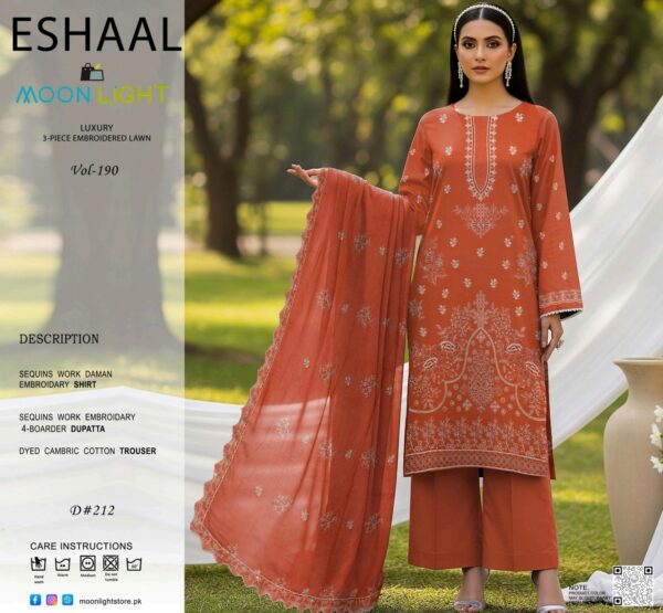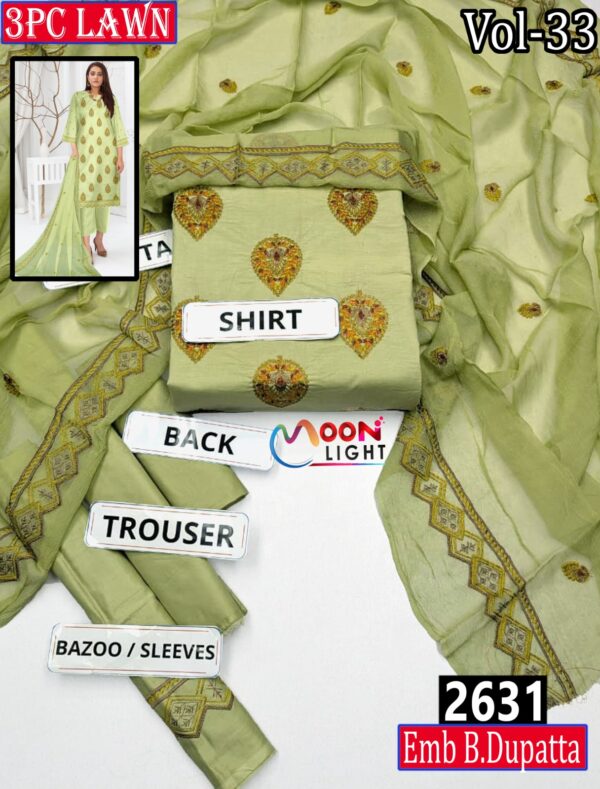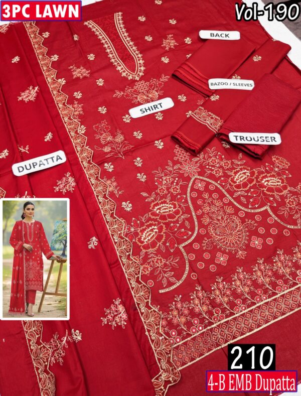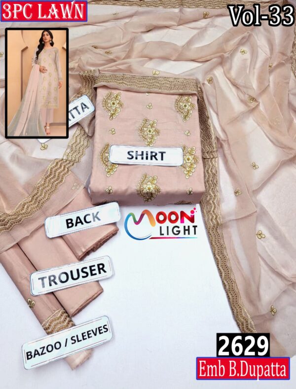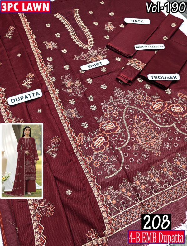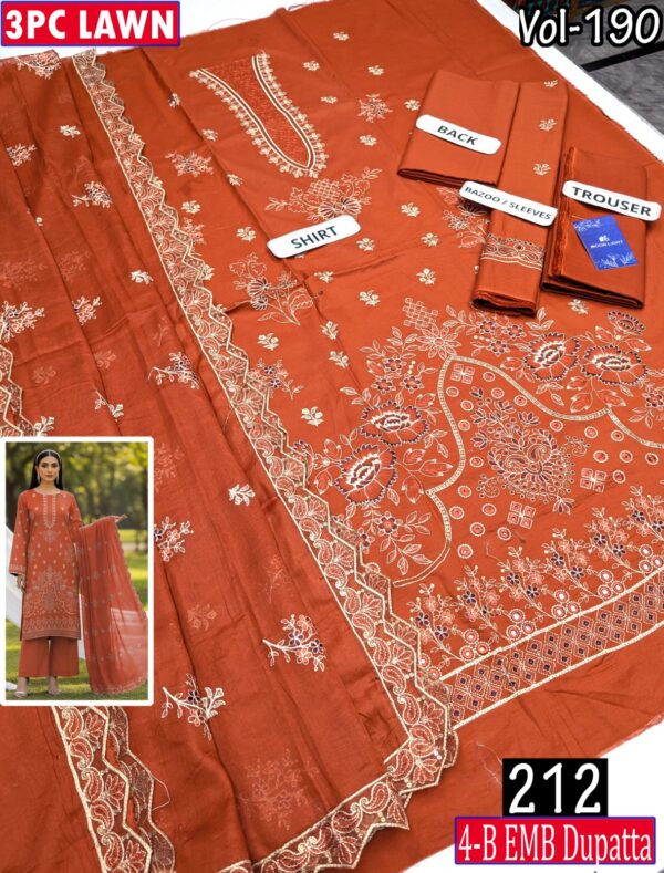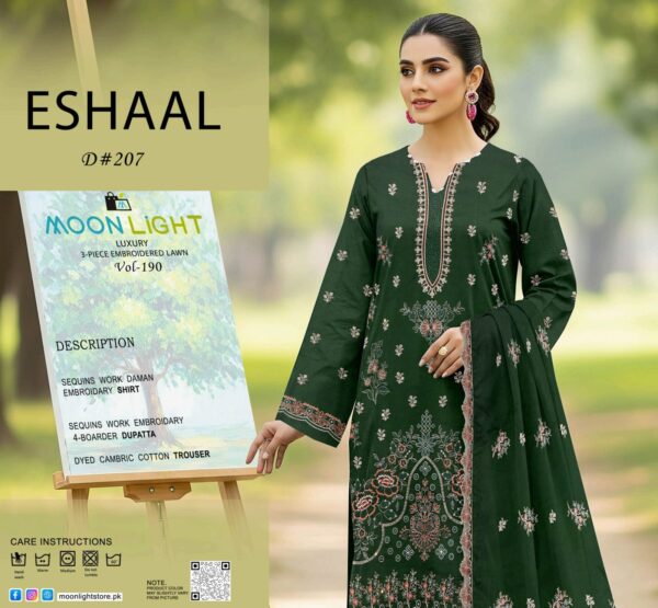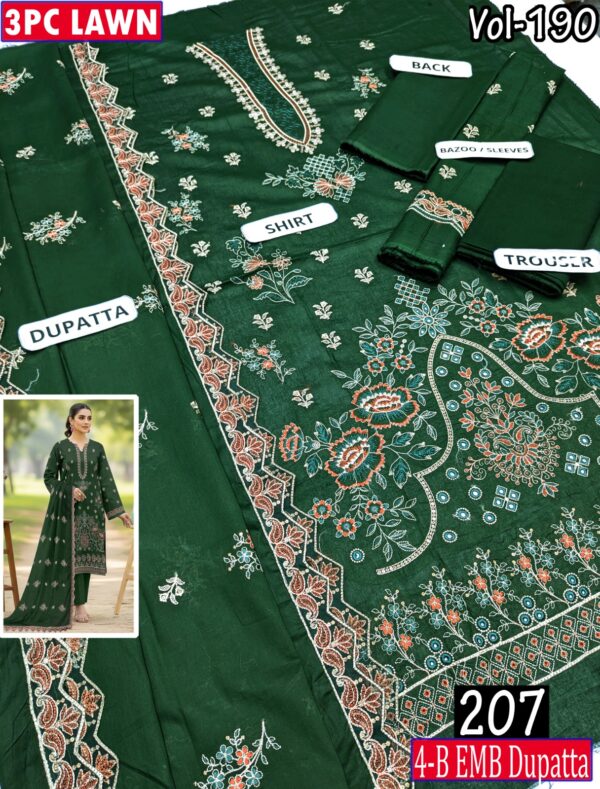 ESHAAL 3PC EMBR SEQUIN DAMAN WORK 4-BORDER LAWN DUPATTA VOL-190 EM-207