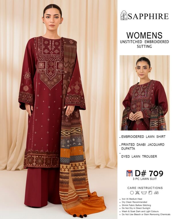 SAPPHIRE 3PC EMB LUXURY DESIGNER LAWN VOL-02 SPM-709