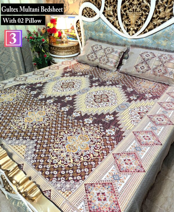 GULTEX MULTANI KING SIZE DOUBLE BED SHEET WITH 2 PILLOWS VOL-01 GB-04