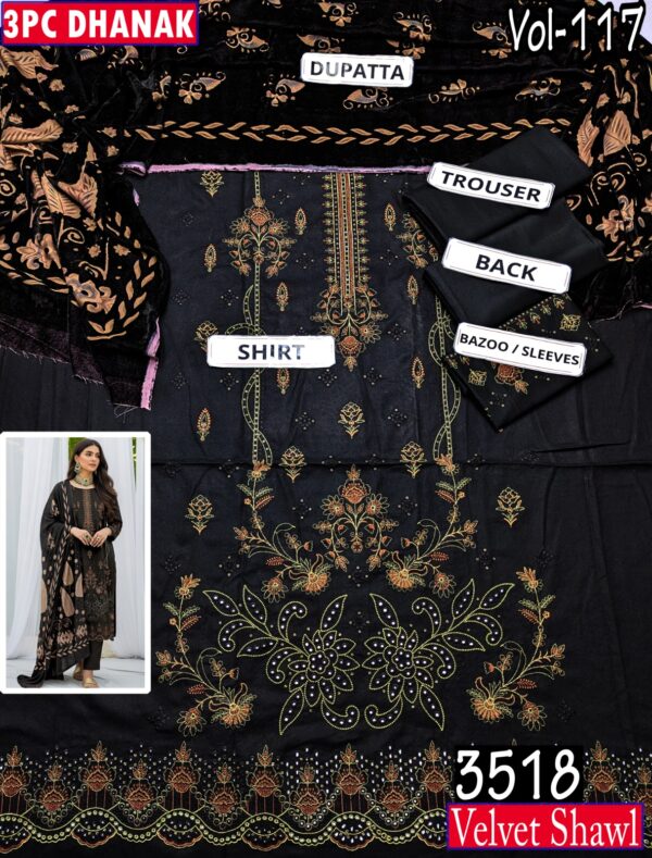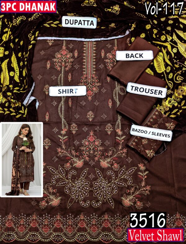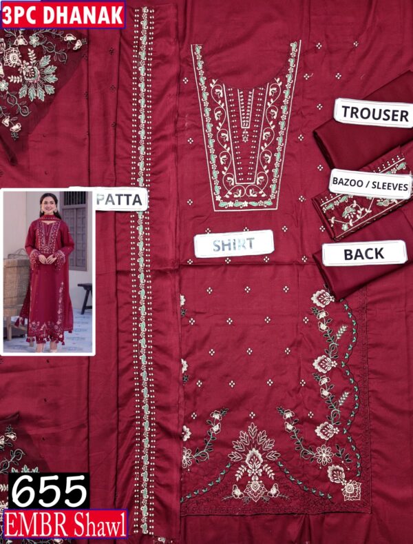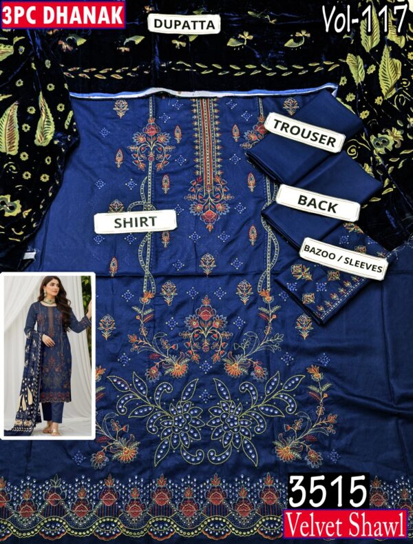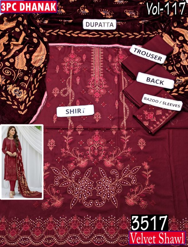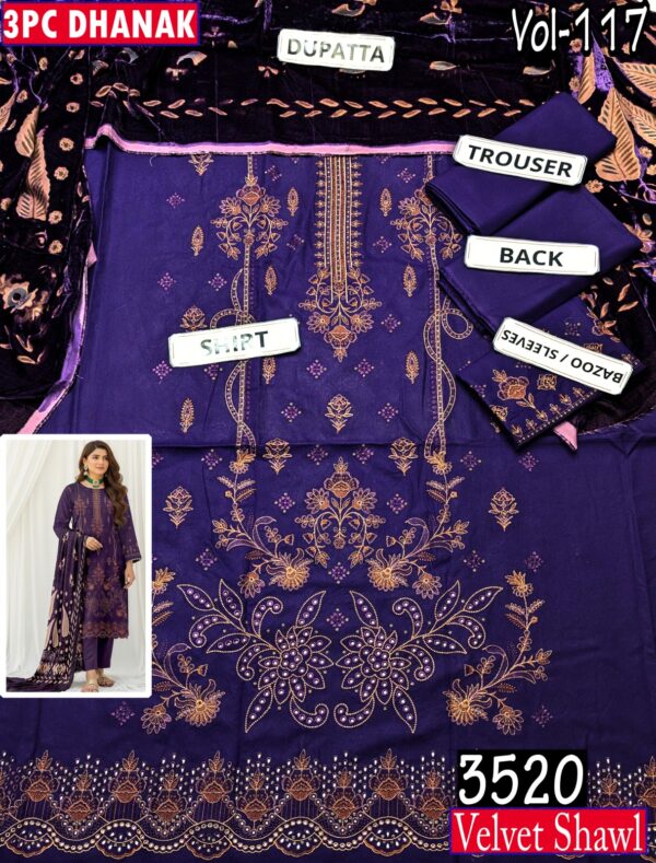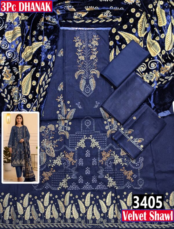 BAROQUE 3PC EMB LUXURY DESIGNER DHANAK VOL-06 BD-651