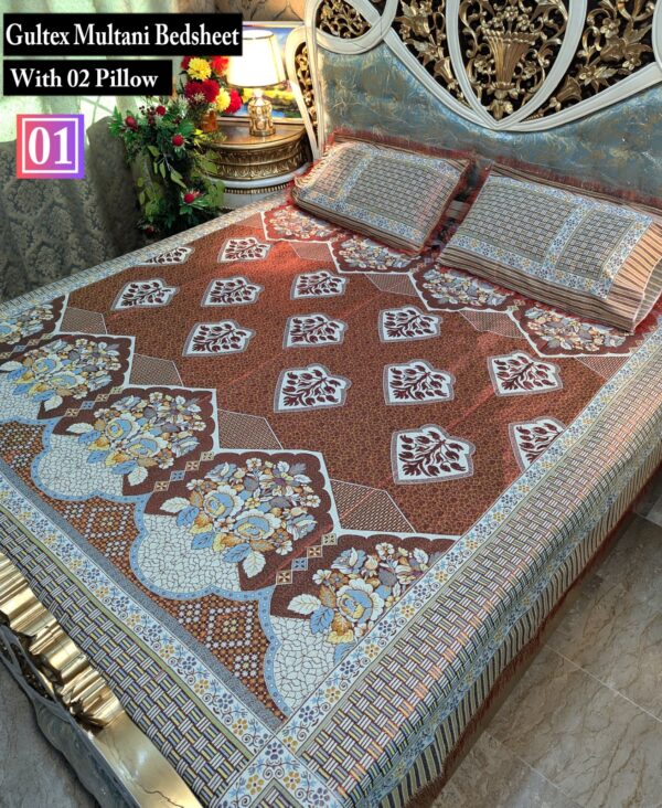 GULTEX MULTANI KING SIZE DOUBLE BED SHEET WITH 2 PILLOWS VOL-01 GB-01