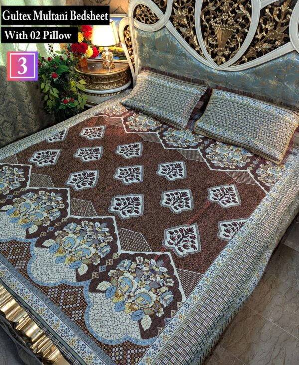 GULTEX MULTANI KING SIZE DOUBLE BED SHEET WITH 2 PILLOWS VOL-01 GB-03