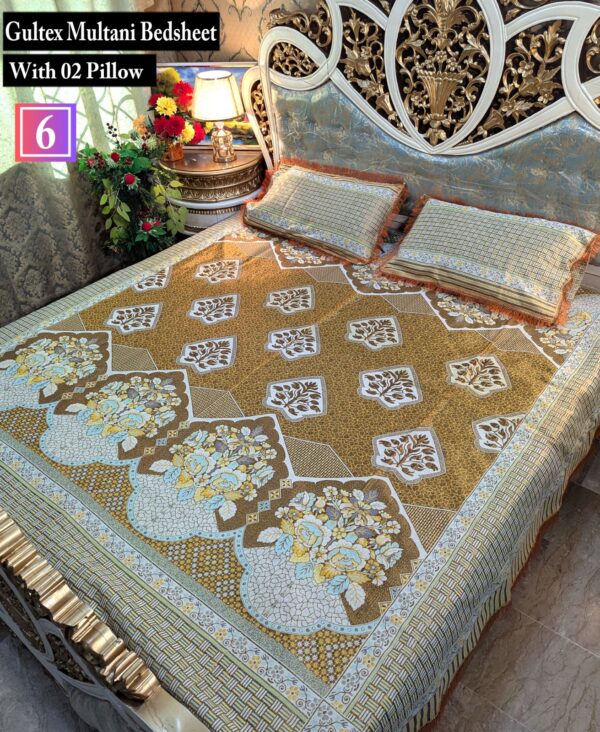 GULTEX MULTANI KING SIZE DOUBLE BED SHEET WITH 2 PILLOWS VOL-01 GB-06