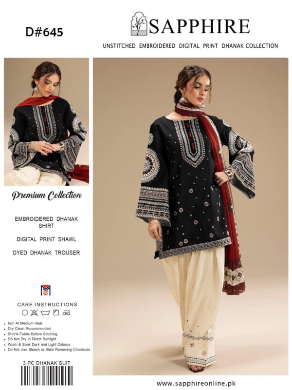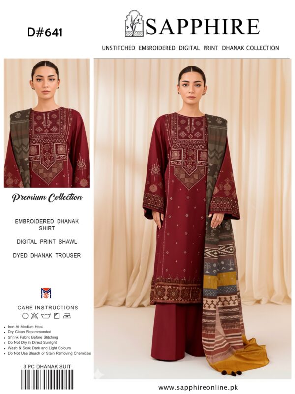 SAPPHIRE 3PC EMB LUXURY DESIGNER DHANAK VOL-03 SD-641