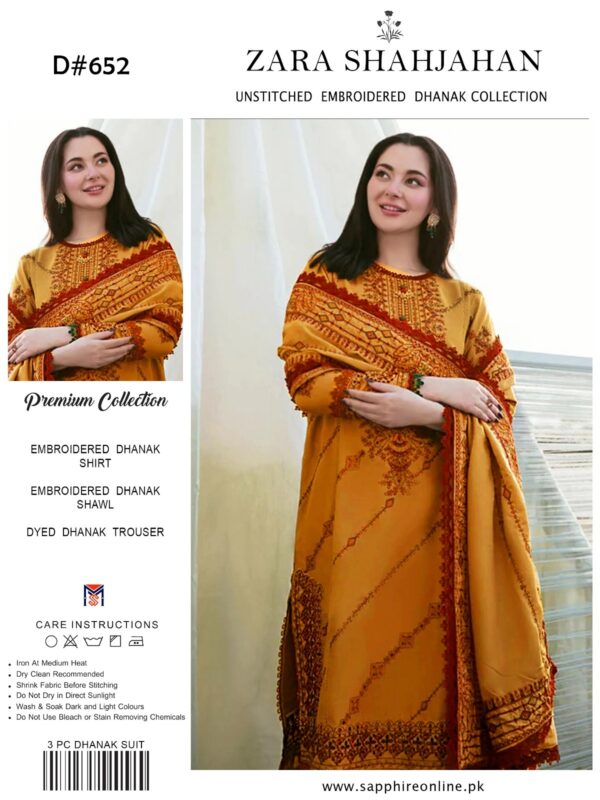 ZARA SHAHJAHAN 3PC EMB LUXURY DESIGNER DHANAK VOL-06 ZD-652