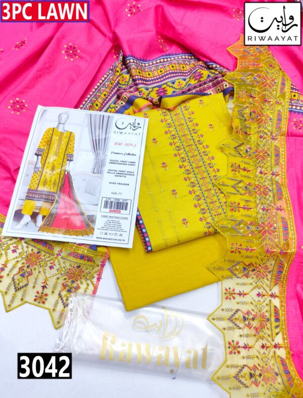 RIWAYAT 3PC DIGITAL PRINTED LAWN PALU EMBROIDERED VOL-77 RWL-3046