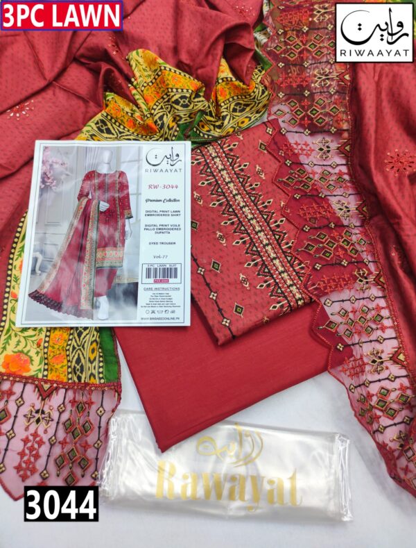 RIWAYAT 3PC DIGITAL PRINTED LAWN PALU EMBROIDERED VOL-77 RWL-3044