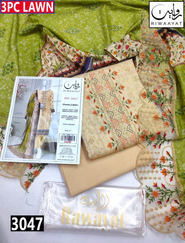 RIWAYAT 3PC DIGITAL PRINTED LAWN PALU EMBROIDERED VOL-77 RWL-3047