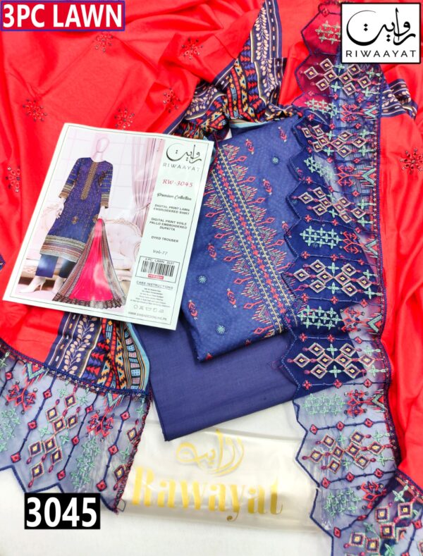RIWAYAT 3PC DIGITAL PRINTED LAWN PALU EMBROIDERED VOL-77 RWL-3045