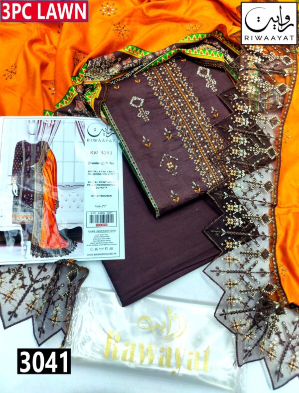 RIWAYAT 3PC DIGITAL PRINTED LAWN PALU EMBROIDERED VOL-77 RWL-3041