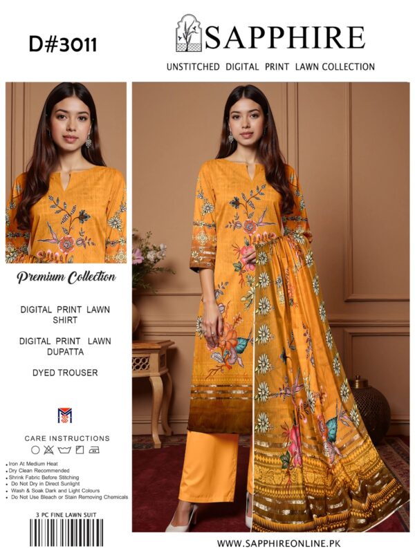 SAPPHIRE 3PC LAWN 90/70 DIGITAL PRINTED COLLECTION VOL-03 SL- 3011