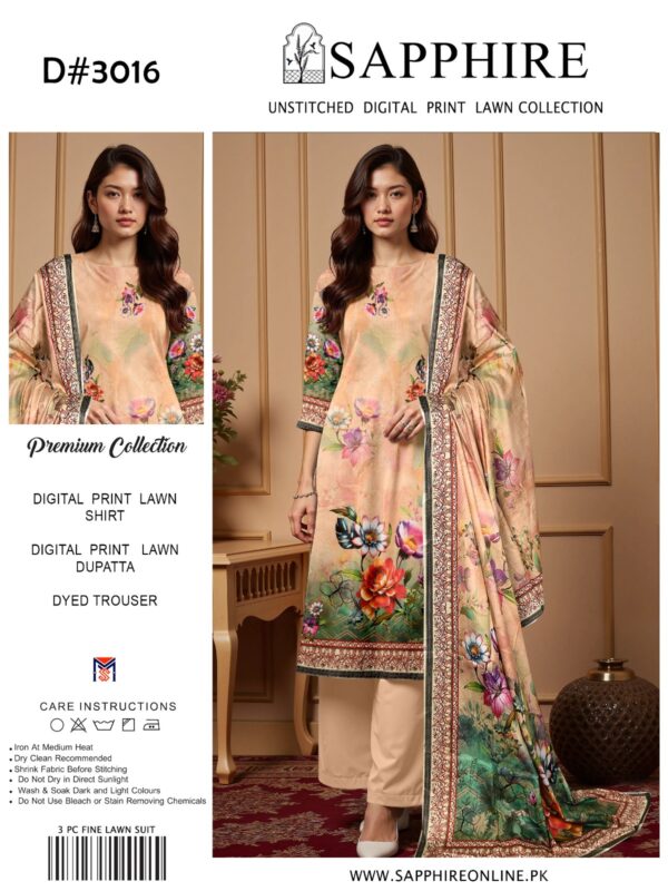 SAPPHIRE 3PC LAWN 90/70 DIGITAL PRINTED COLLECTION VOL-03 SL- 3016