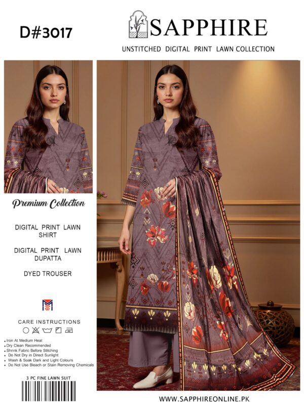 SAPPHIRE 3PC LAWN 90/70 DIGITAL PRINTED COLLECTION VOL-03 SL- 3017