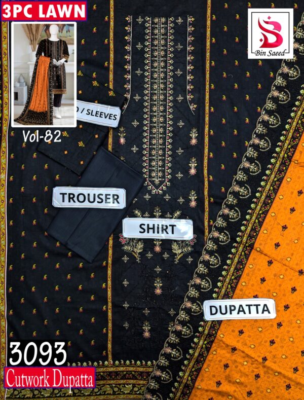 BIN SAEED 3PC LAWN CUTWORK EMB DIGITAL PRINTED VOL-82 BSL-3093