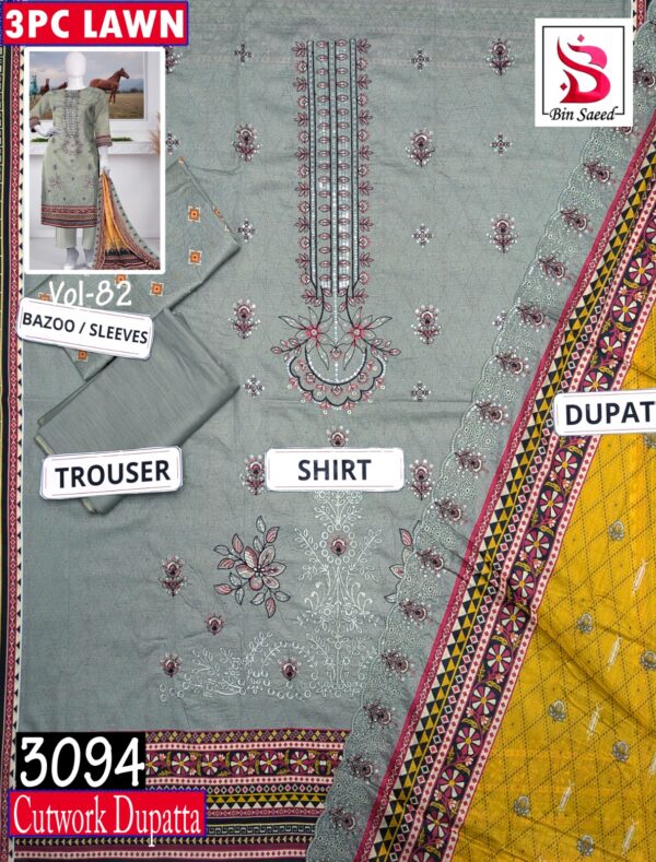 BIN SAEED 3PC LAWN CUTWORK EMB DIGITAL PRINTED VOL-82 BSL-3094