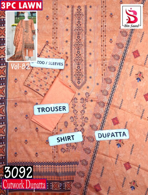 BIN SAEED 3PC LAWN CUTWORK EMB DIGITAL PRINTED VOL-82 BSL-3092