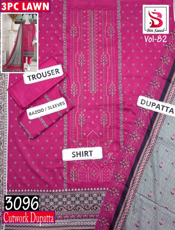 BIN SAEED 3PC LAWN CUTWORK EMB DIGITAL PRINTED VOL-82 BSL-3096