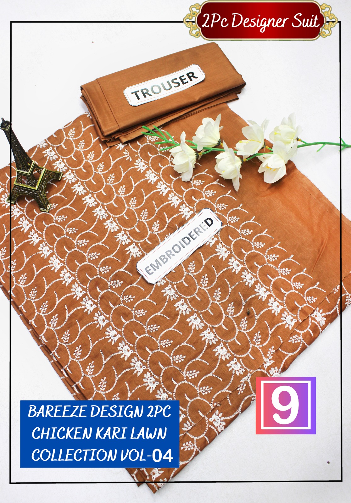 BAREEZE 2PC CHICKEN KARI EMB PURE LAWN VOL-04 BK-09