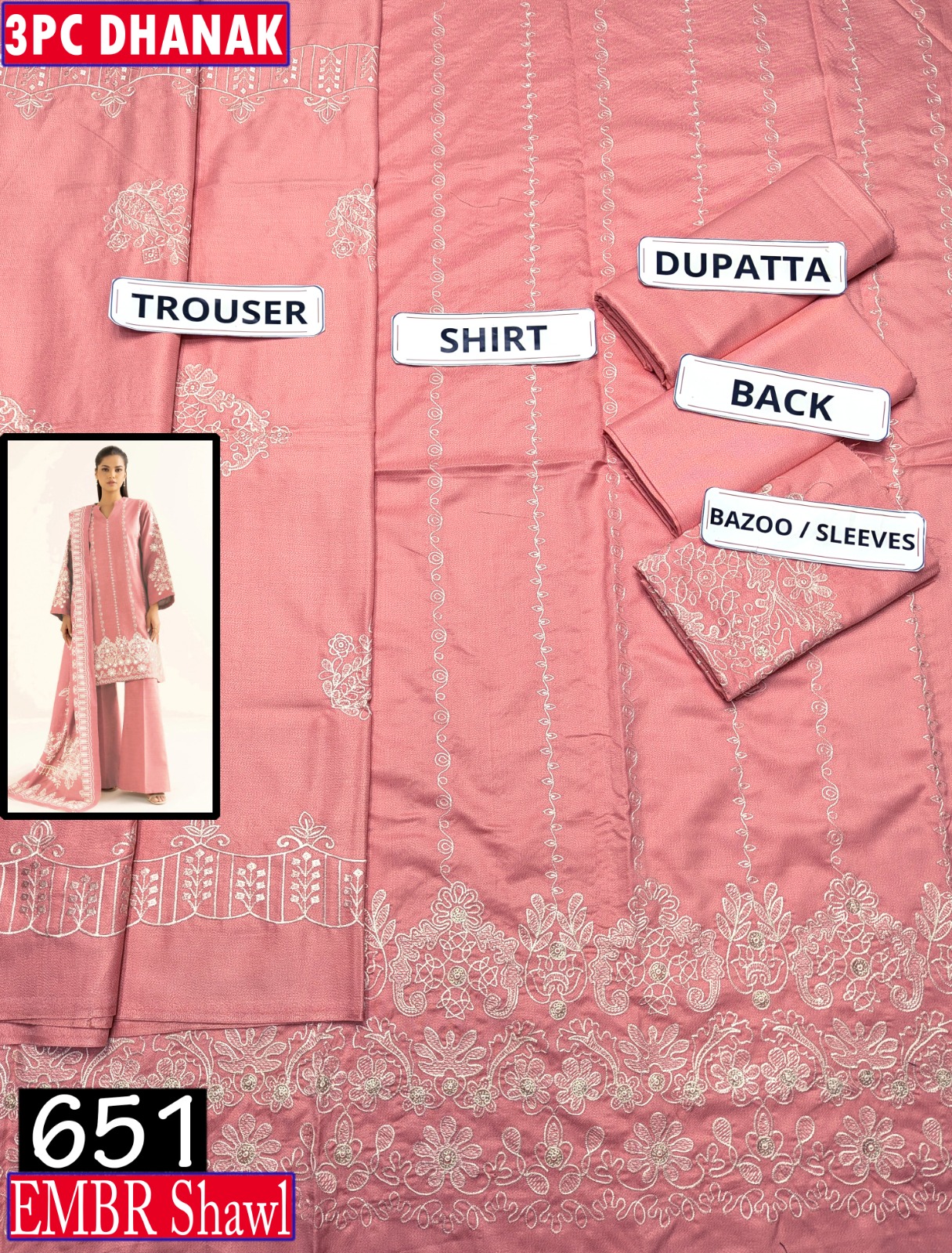 BAROQUE 3PC EMB LUXURY DESIGNER DHANAK VOL-06 BD-651