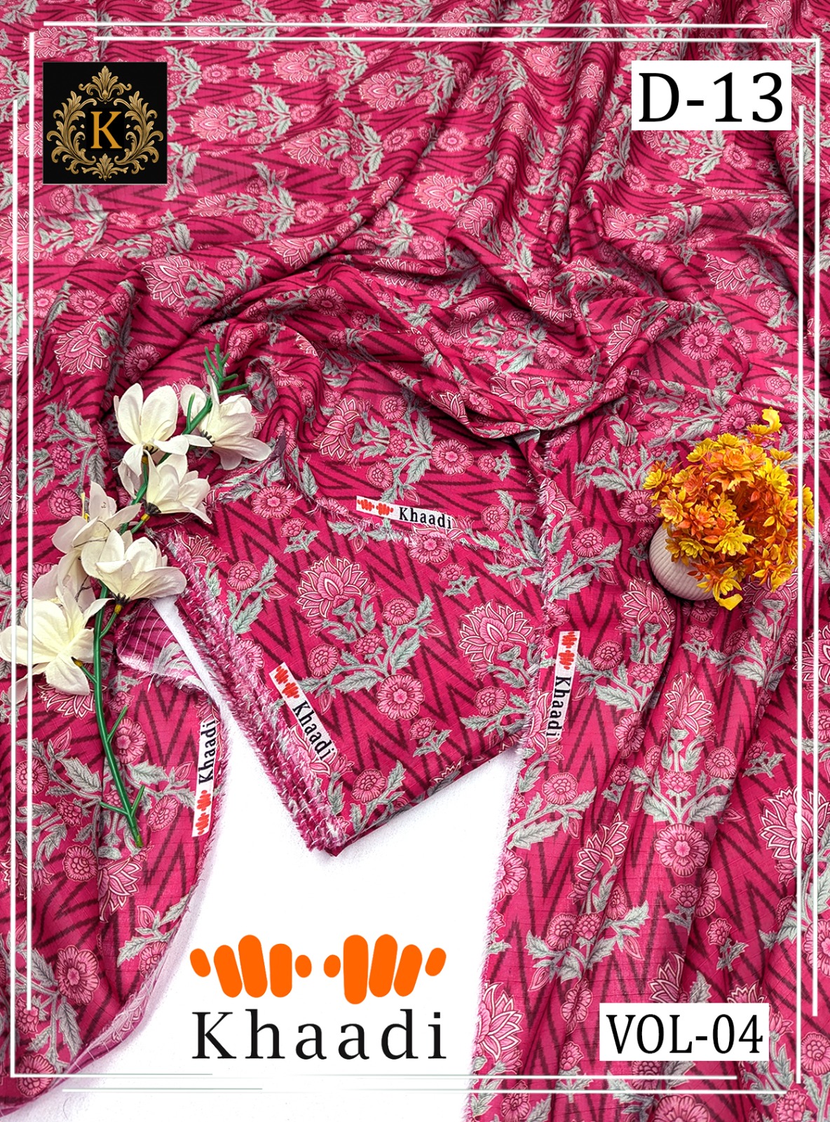 KHAADI 2PC ALL OVER BANA DORA LAWN 90/96 DIGITAL PRINTED VOL-04