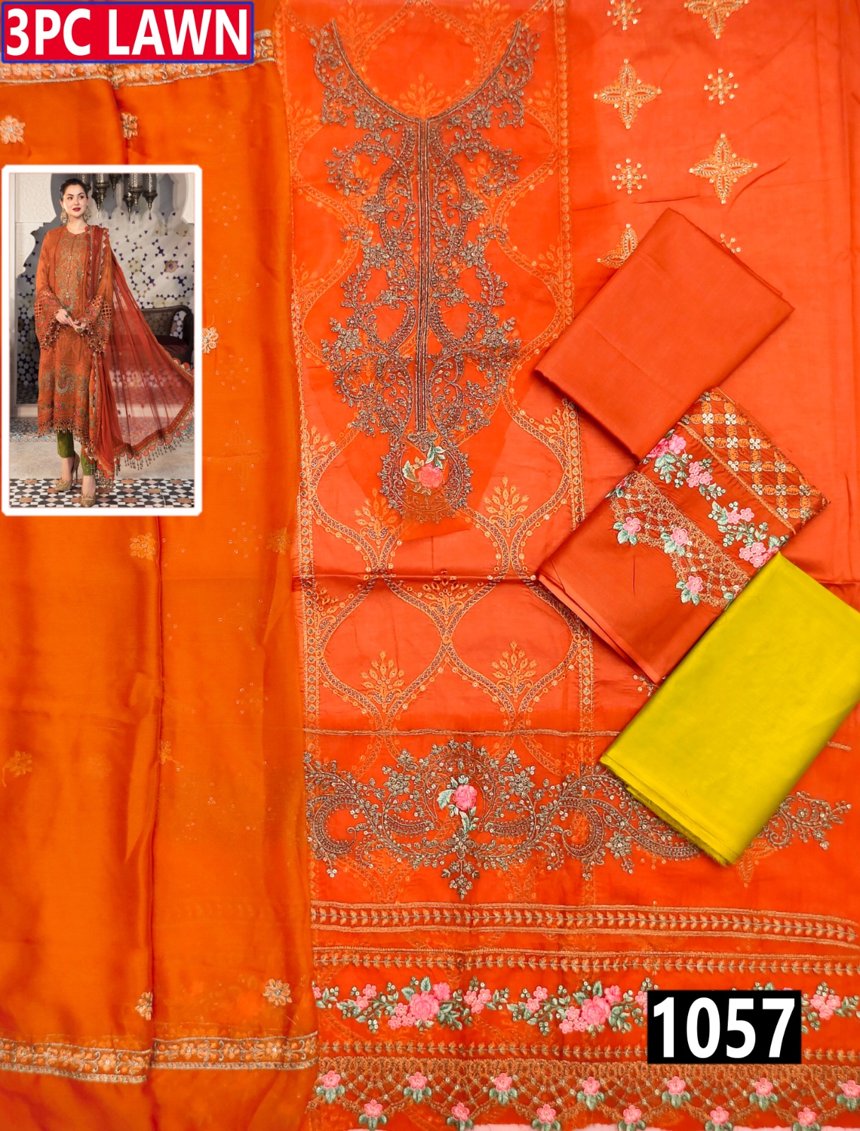 MARIA B 3PC EMB LUXURY DESIGNER LAWN VOL-01 MB-1057