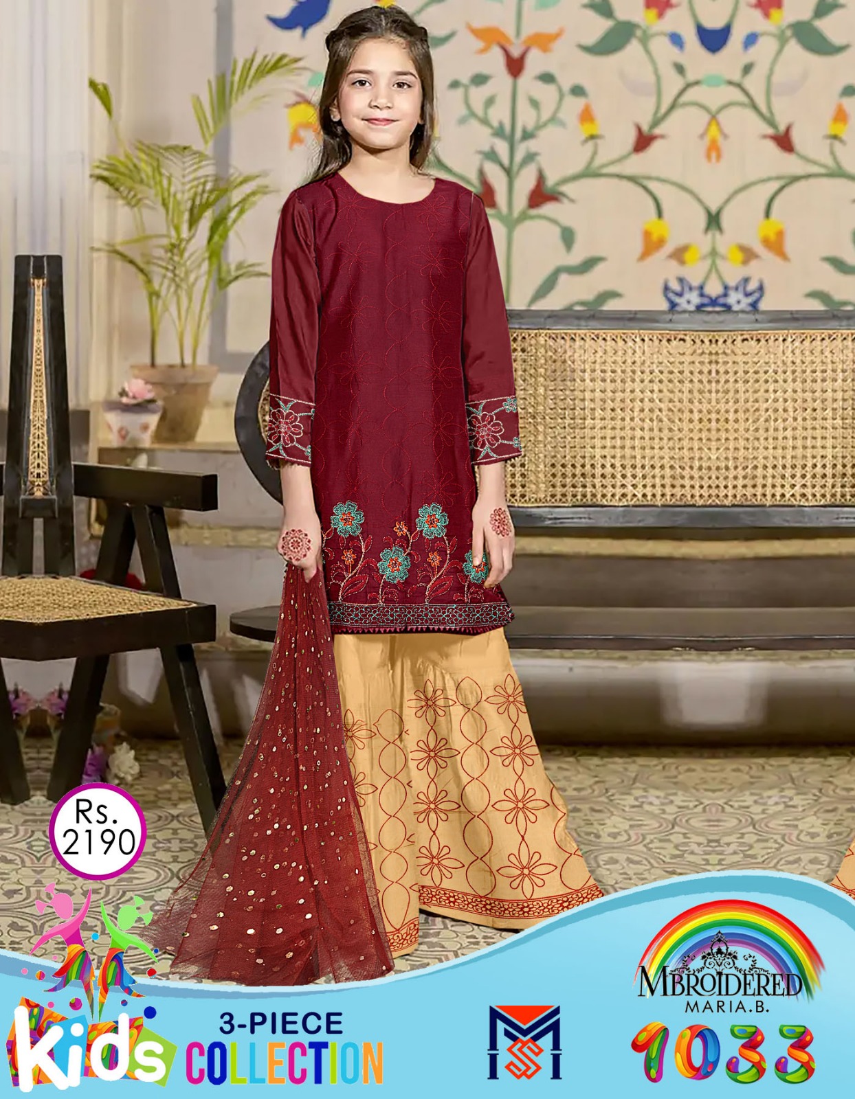 HomeKids Collection MARIA B KIDS 3PC LAWN ARHI EMBROIDERED VOL-04 KD-1033
