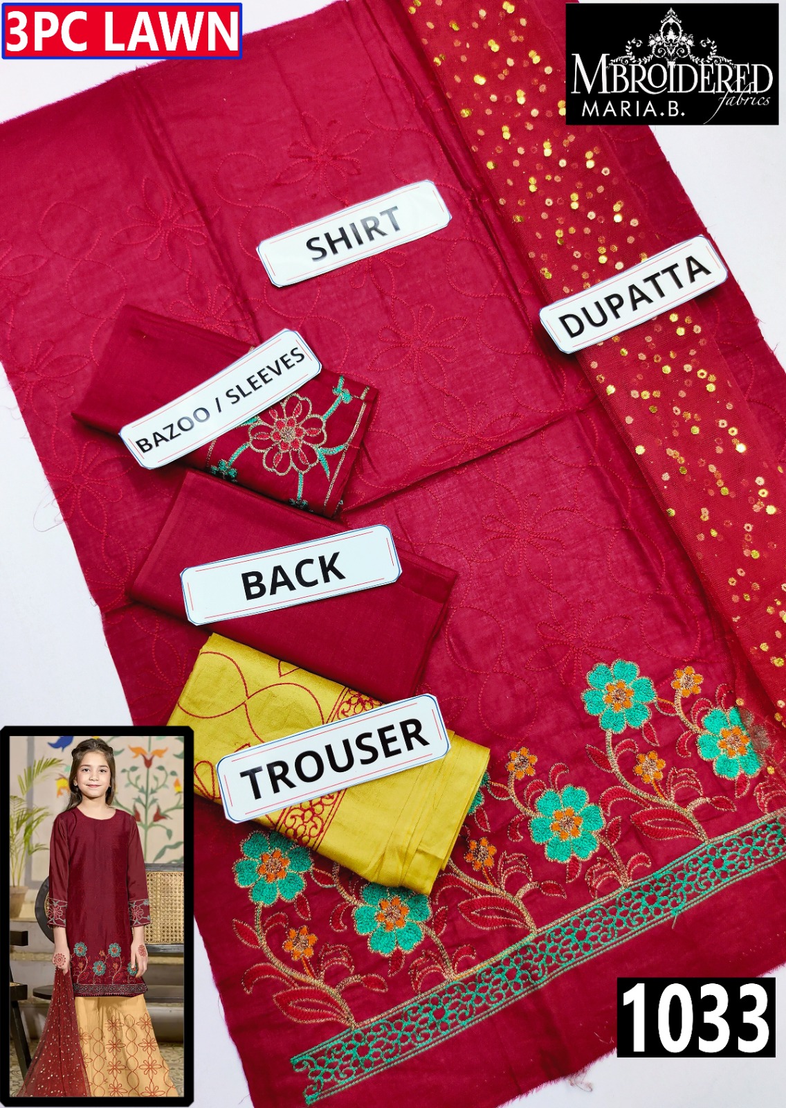 MARIA B KIDS 3PC LAWN ARHI EMBROIDERED VOL-03 MB-1024