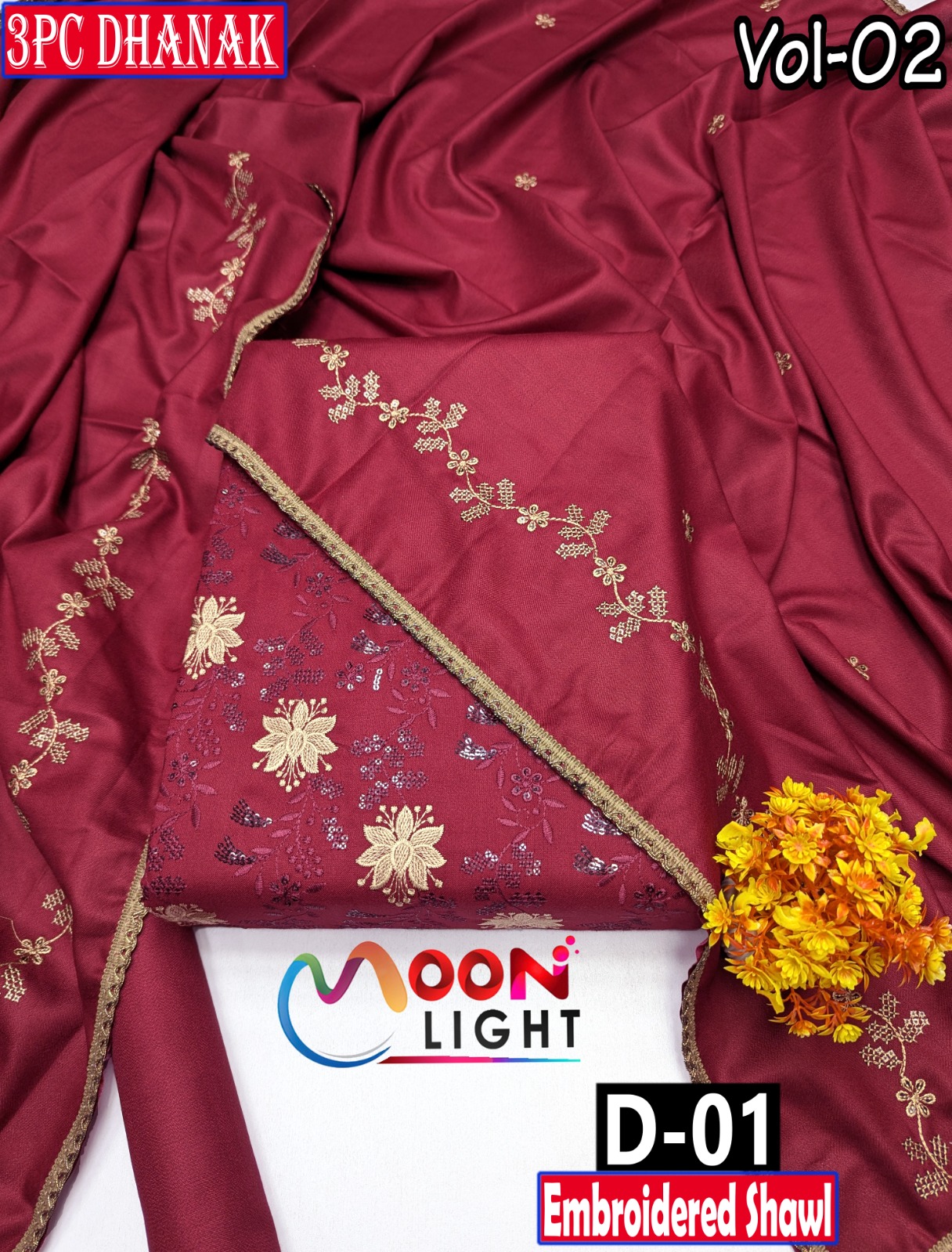 MOONLIGHT 3PC DHANAK HEAVY EMBROIDERED COLLECTION VOL-02 MD-01