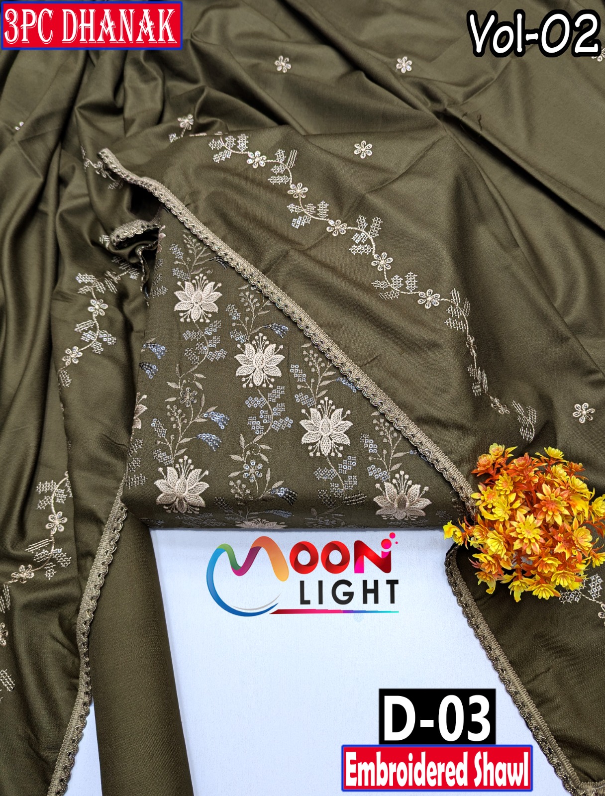 MOONLIGHT 3PC DHANAK HEAVY EMBROIDERED COLLECTION VOL-02 MD-03