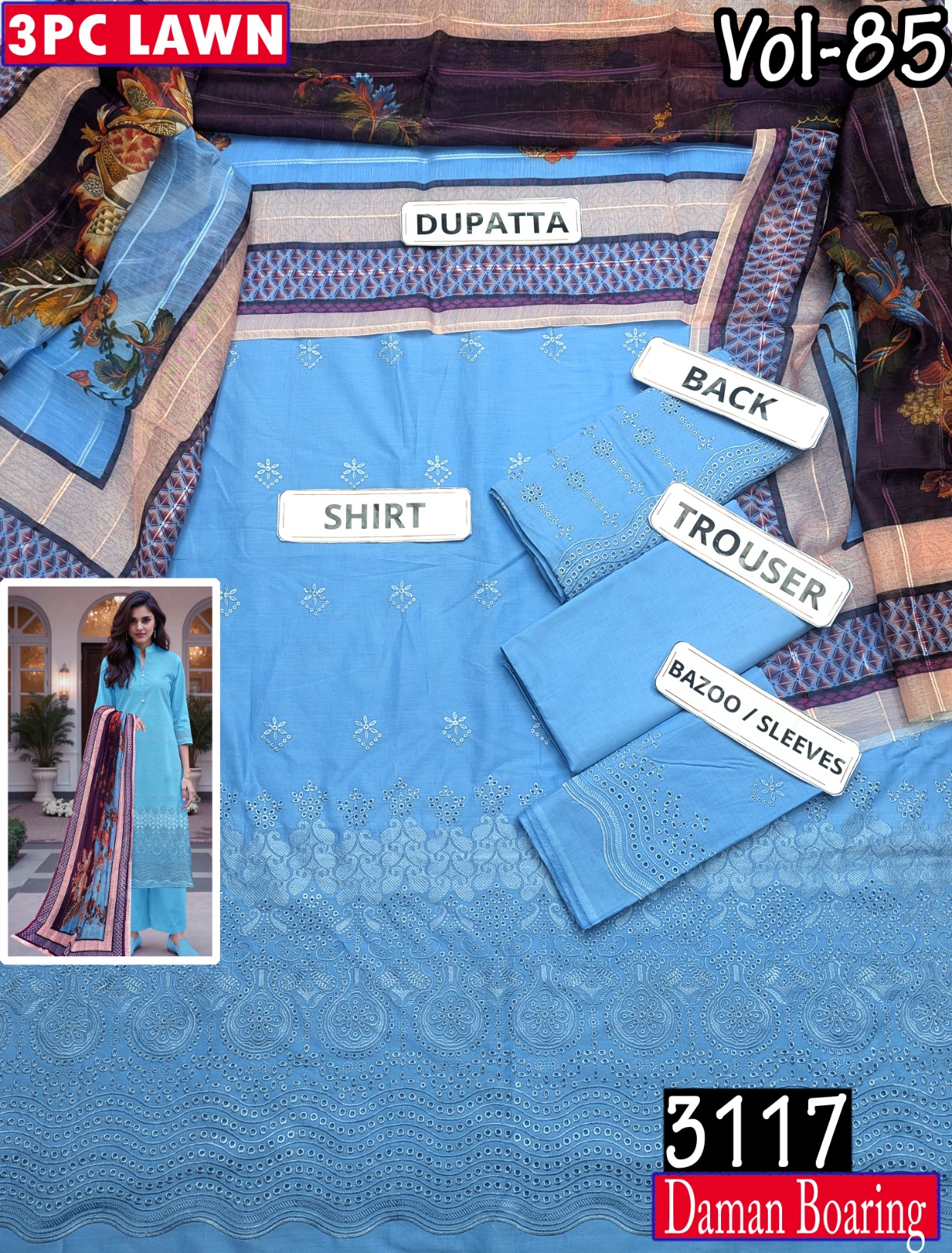 MOONLIGHT 3PC EMB LAWN DAMAN BOARING DESIGNER VOL-85 MDE-3117