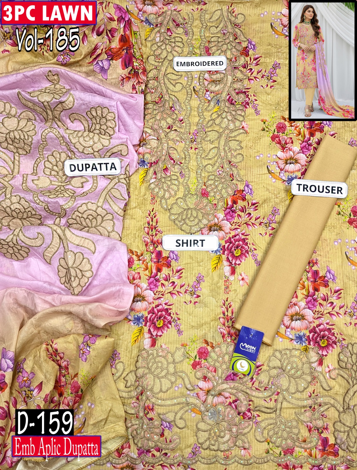 MOONLIGHT 3PC EMBR SEQUIN BANA DORA PRINTED APLIC WORK DESIGNER VOL-185 RH-159