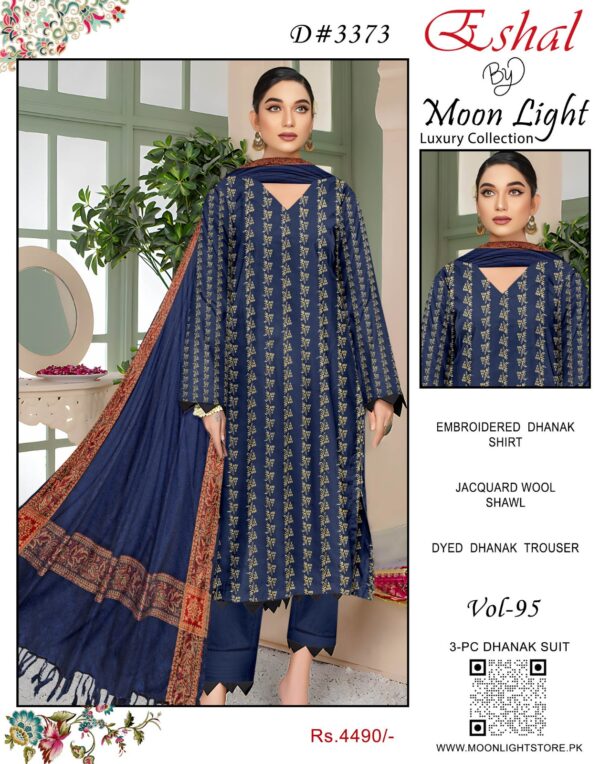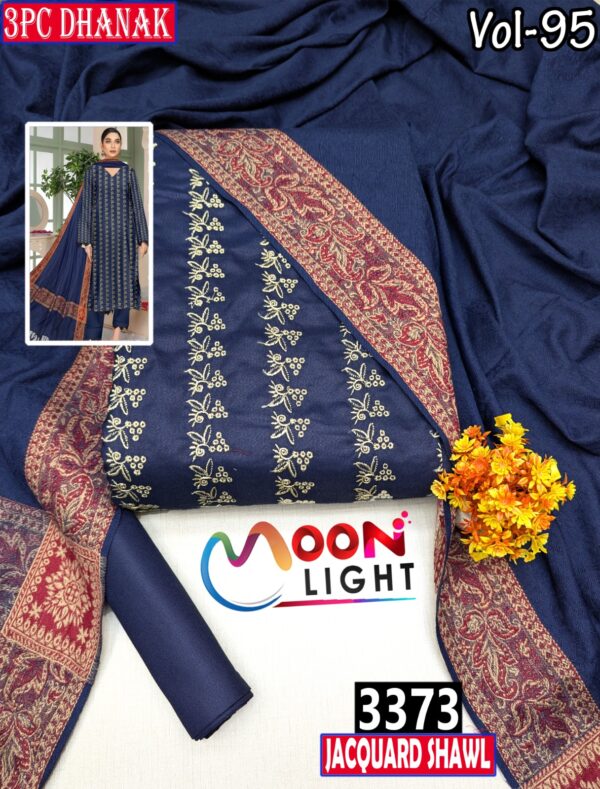 MOONLIGHT 3PC DHANAK EMBROIDERED JACQUARD SHAWL DESIGNER VOL-95 MDJ-3373
