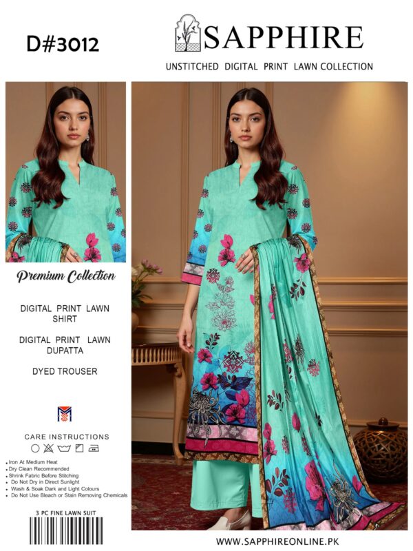 SAPPHIRE 3PC LAWN 90/70 DIGITAL PRINTED COLLECTION VOL-03 SP-3012