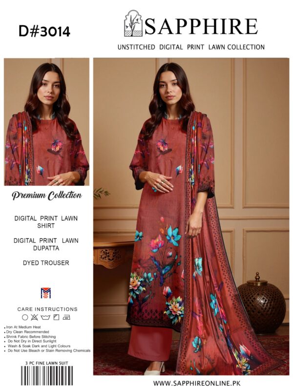 SAPPHIRE 3PC LAWN 90/70 DIGITAL PRINTED COLLECTION VOL-03 SP-3014
